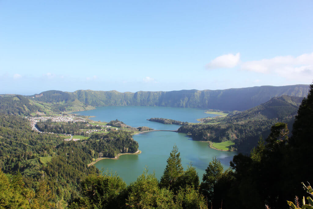 El verde dominante en Sao Miguel se rompe en trece rincones de la isla y aparece el azul, formando un cóctel irresistible a los ojos de cualquier viajero. ¡Exacto! Me refiero a la multitud de lagos que bañan este maravilloso destino portugués. Entre ellos destacan las gemelas Lagoas Empadadas, vecinas del mirador do Pau cuyas vistas del noroeste son espectaculares; la archiconocida Lagoa das Sete Cidades, una de las visitas estrella que ver en Sao Miguel, con su lago verde y azul; la hundida Lagoa do Fogo, un cráter lleno de agua; y la Lagoa das Furnas, con el embrujo de la Capilla de Nuestra Señora de las Victorias a un extremo y las calderas humeantes al otro.